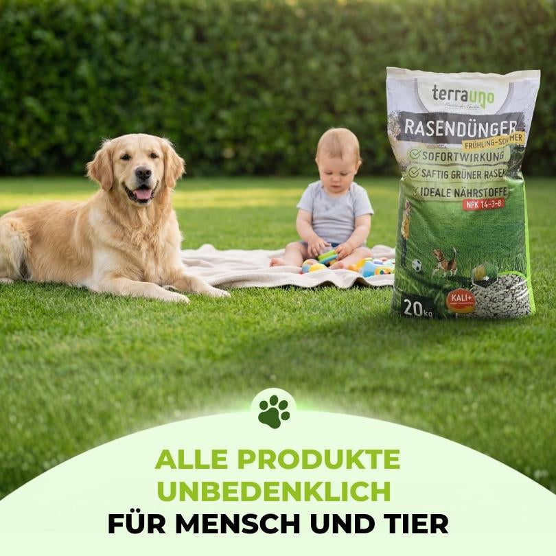 Das TerraUno Rasenstarter-Set enthält alles, was du für die perfekte Rasenpflege für den Start in die Saison brauchst. Es ist geeignet für Flächen von 250 m², 500 m² und 1000 m² und sorgt für einen gesunden, dichten und widerstandsfähigen Rasen.