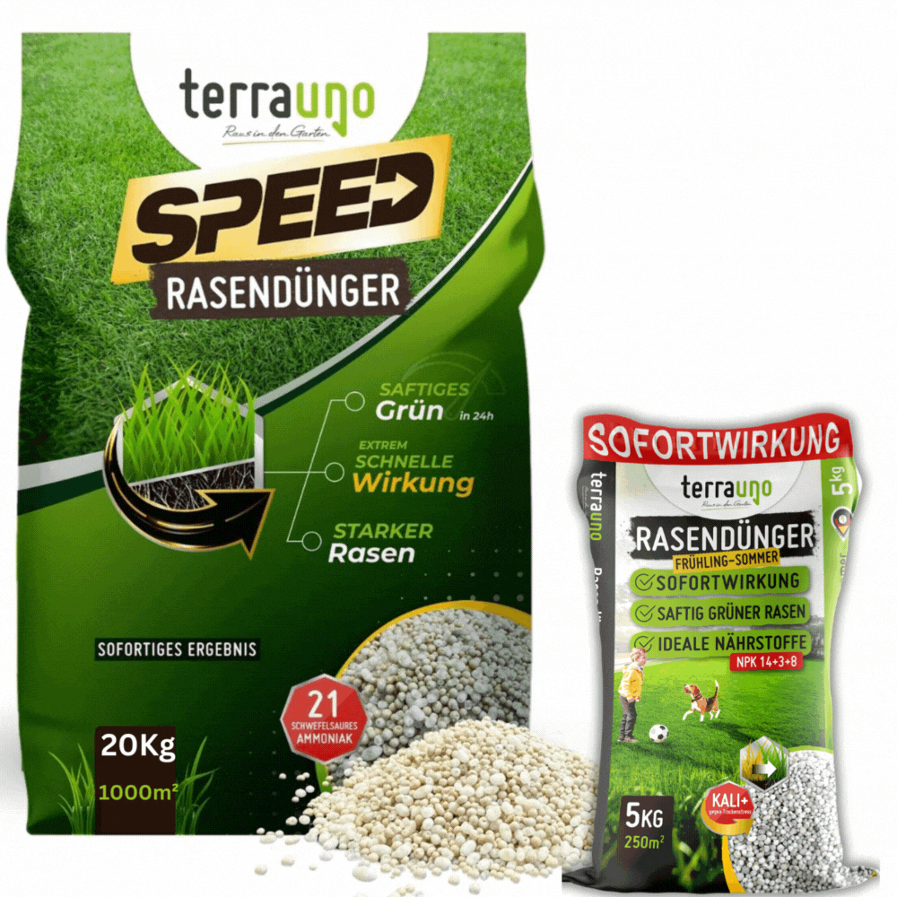 Der Terrauno Speed Rasendünger ist ein Stickstoffdünger und die perfekte Lösung, wenn du schnell einen grünen und strapazierfähigen Rasen haben willst. Durch das feine Granulat löst sich der Dünger schnell auf und entfaltet seine Wirkung, die dafür sorgt, dass dein Rasen innerhalb kürzester Zeit wieder in einer prächtigen grünen Farbe erstrahlt!