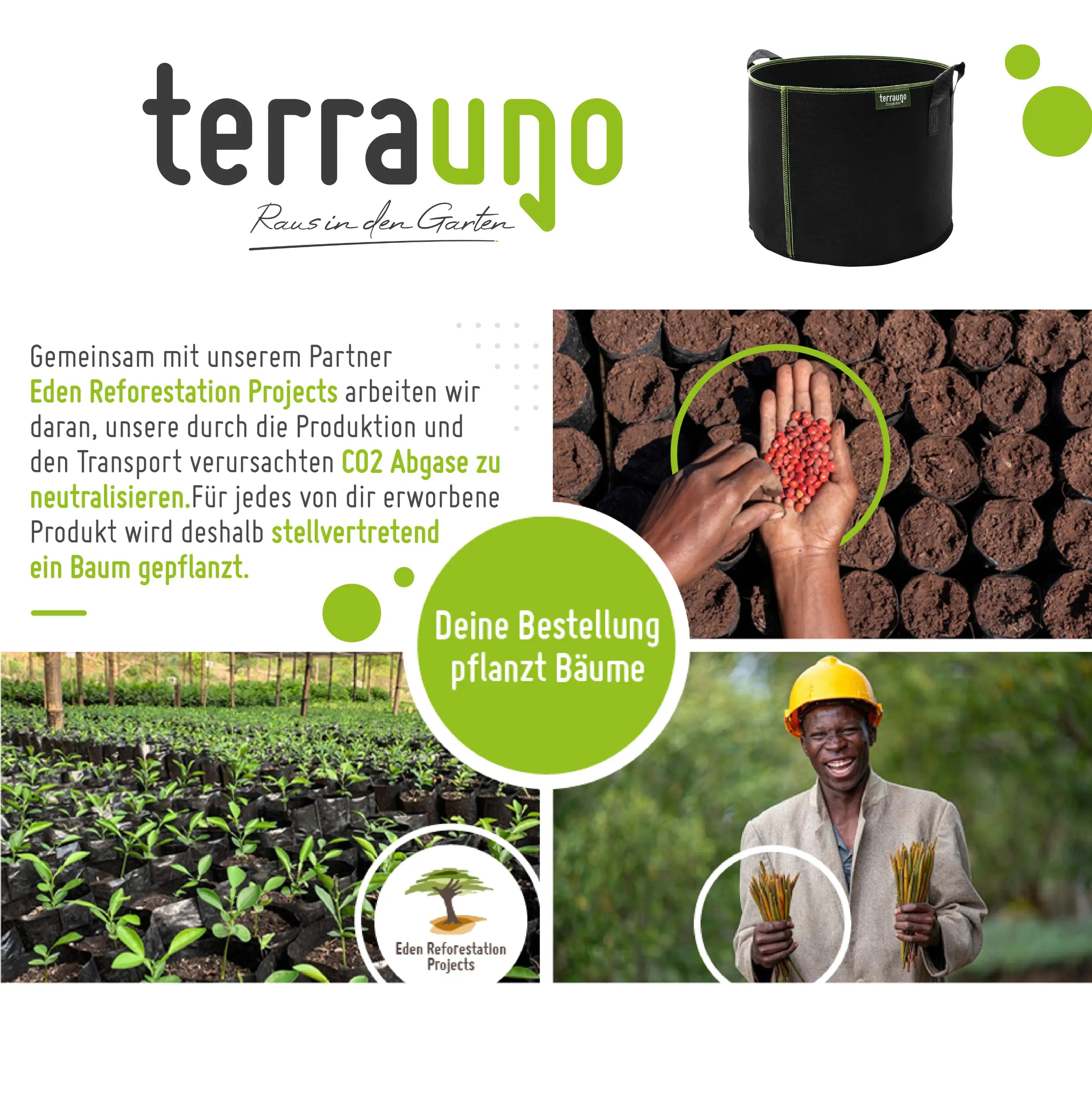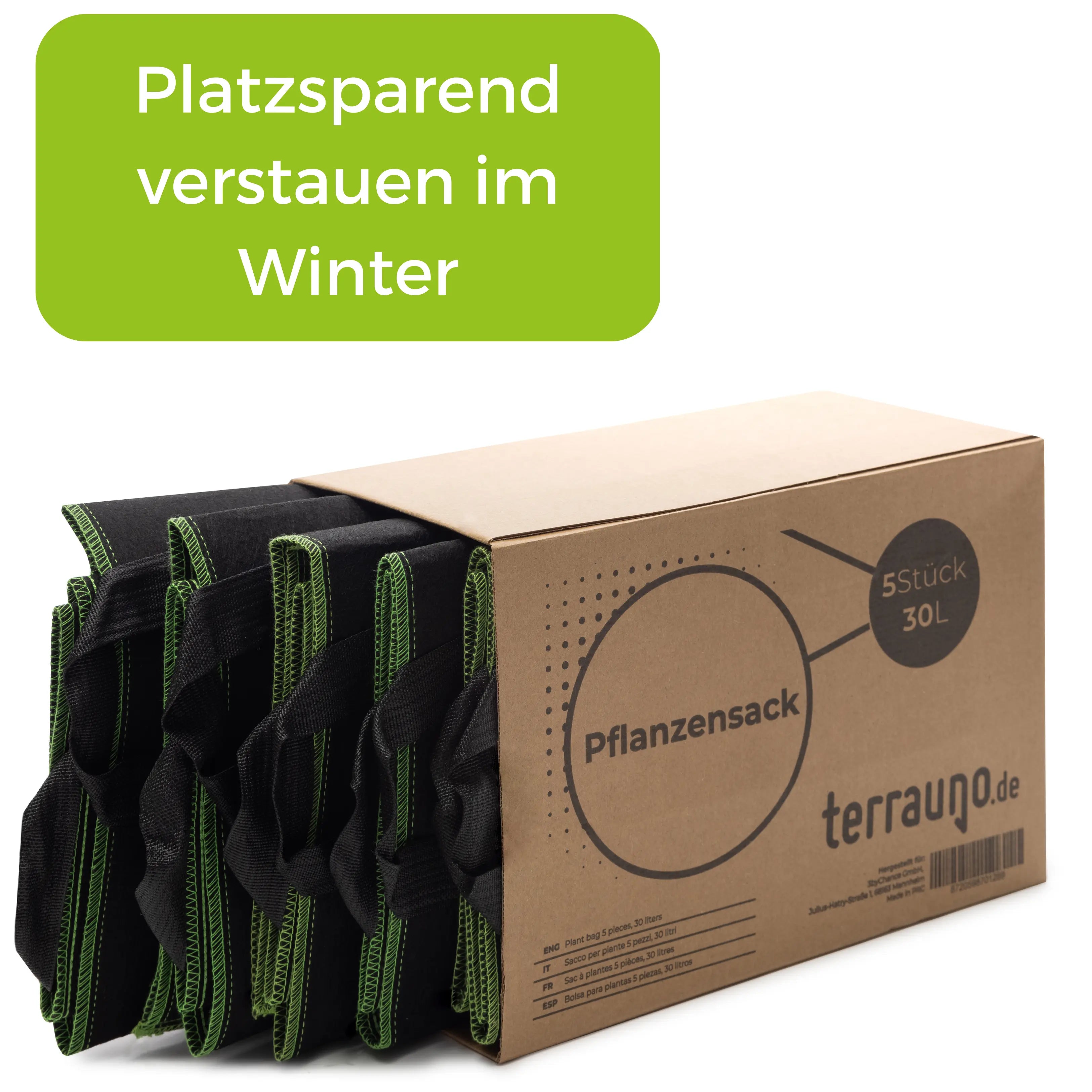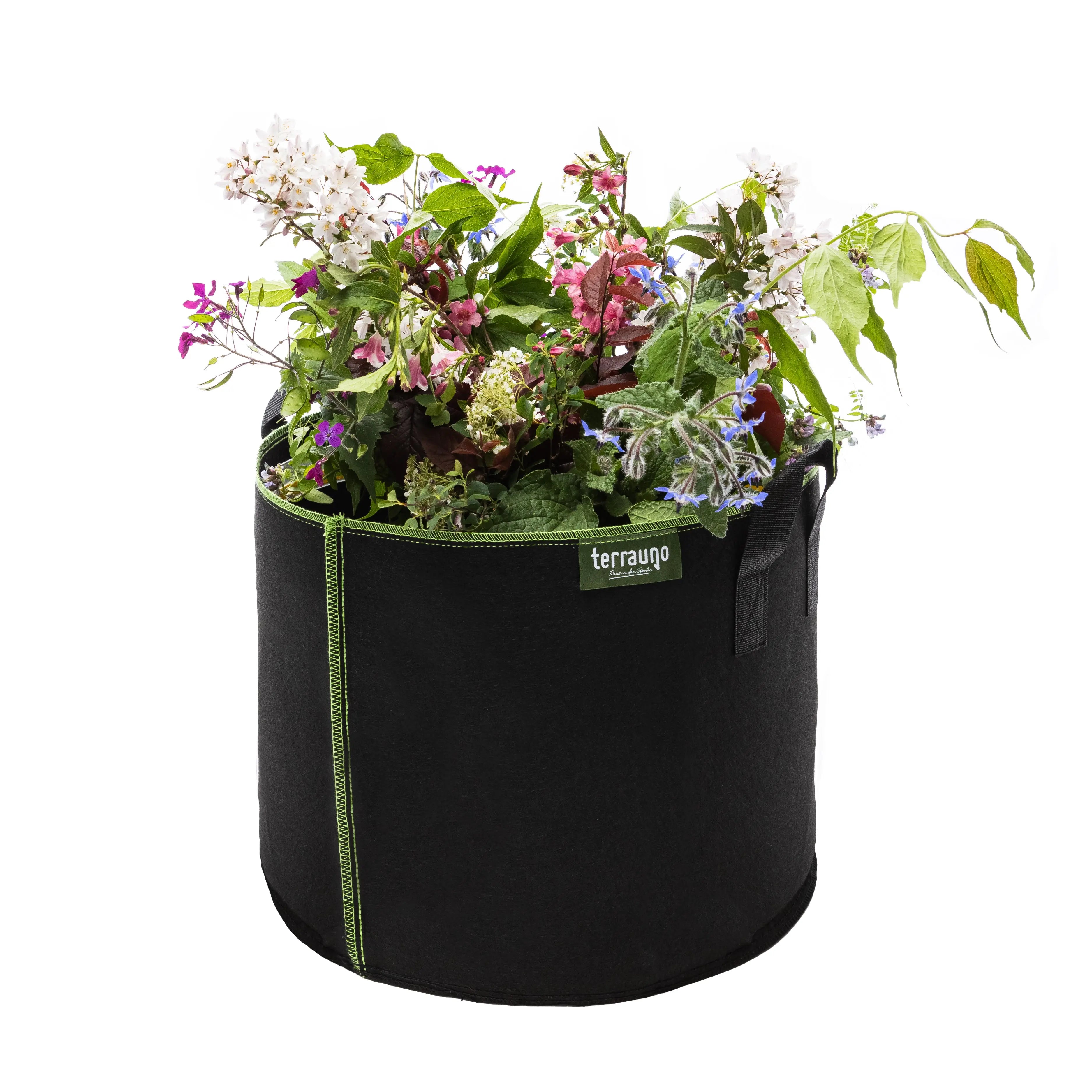 Entdecke die Vielseitigkeit und Effizienz unseres Terrauno Pflanzsacks aus Vliesstoff inkl. Pflanzenschilder. Dieser robuste und atmungsaktive Pflanzsack bietet optimale Wachstumsbedingungen für Deine Pflanzen und ist die perfekte Lösung für Garten, Balkon oder Terrasse.
