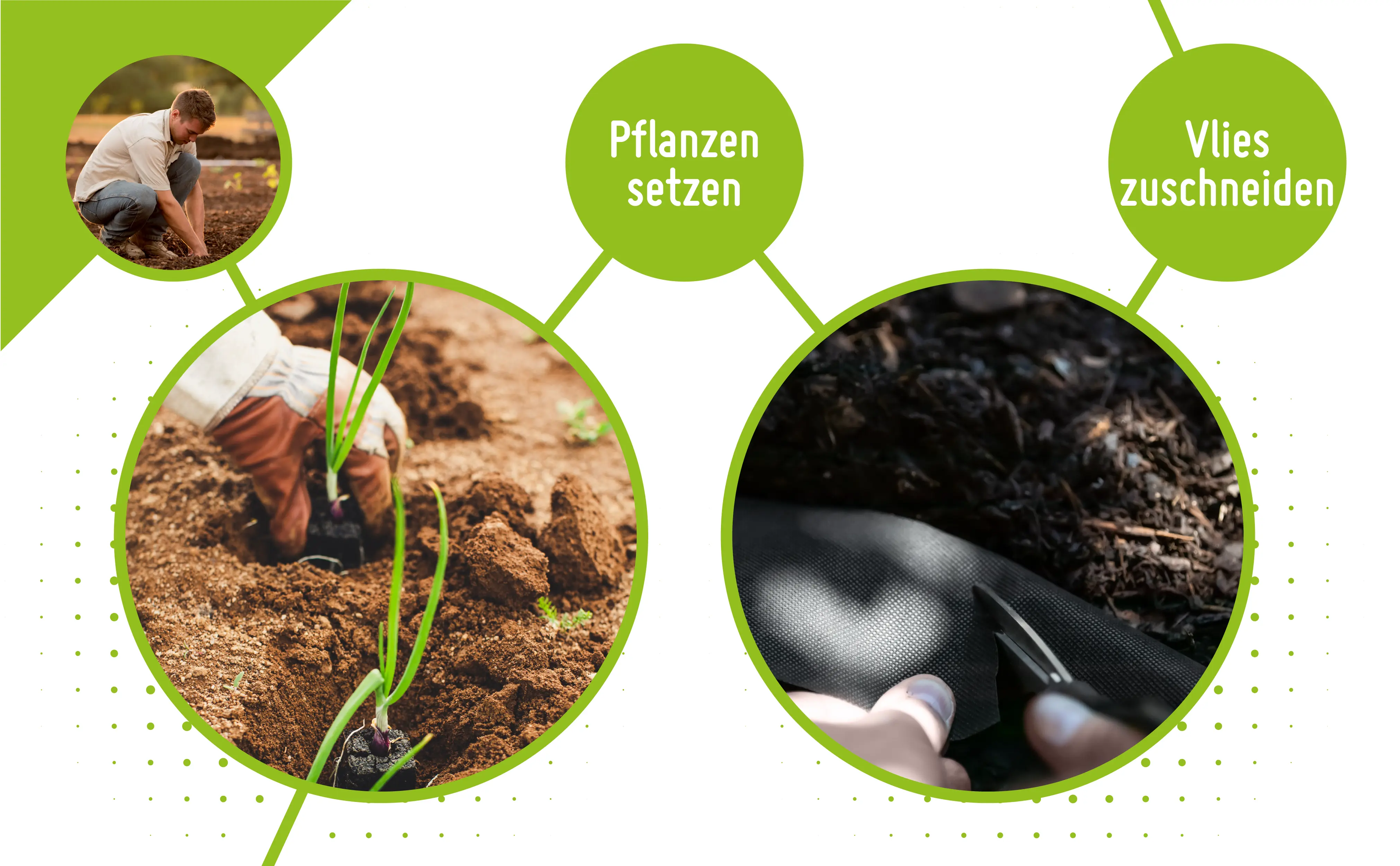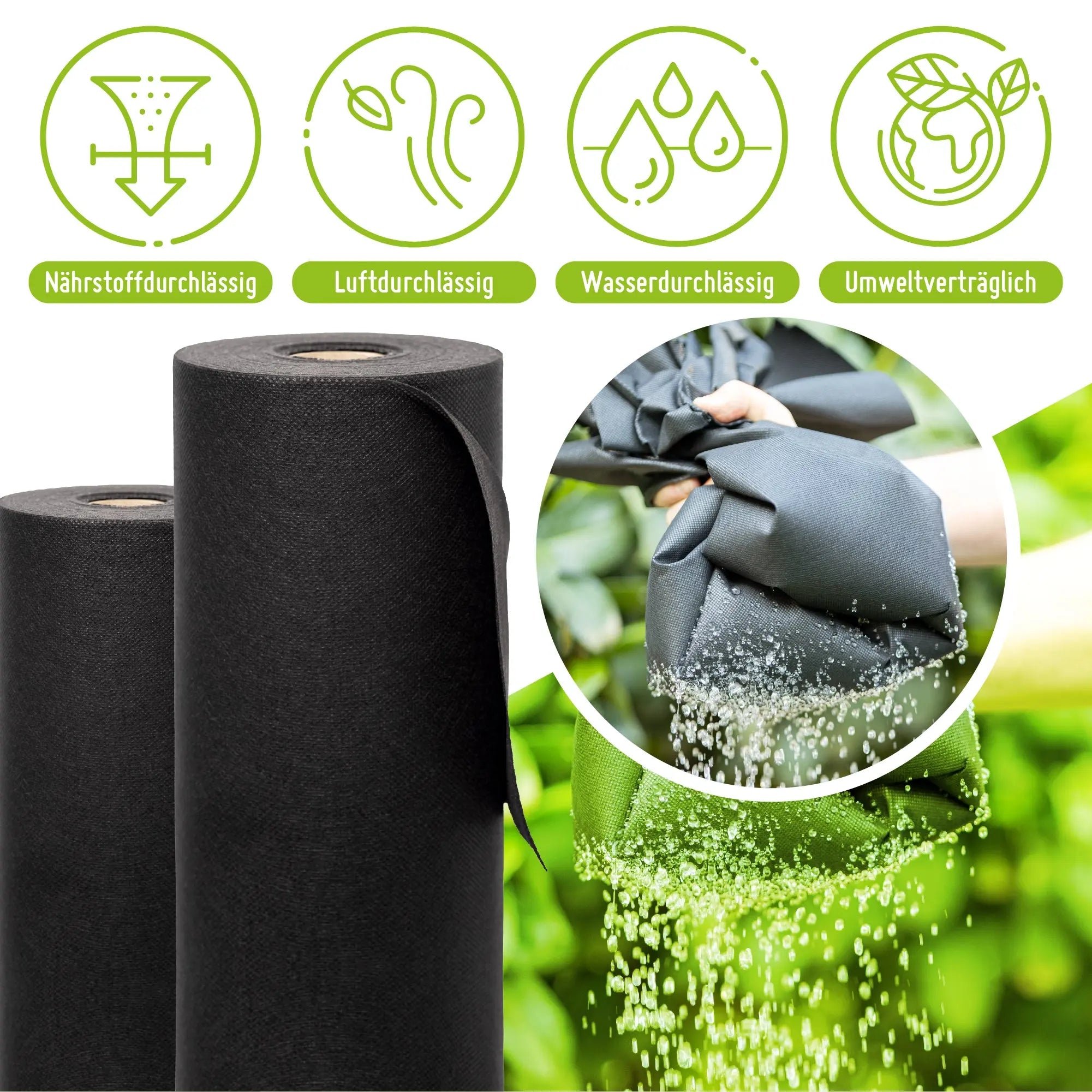 - Atmungsaktiv und wasserdurchlässig: Das Vlies lässt Wasser, Nährstoffe und Luft zu den Pflanzenwurzeln durch, während es gleichzeitig das Wachstum von Unkraut verhindert.