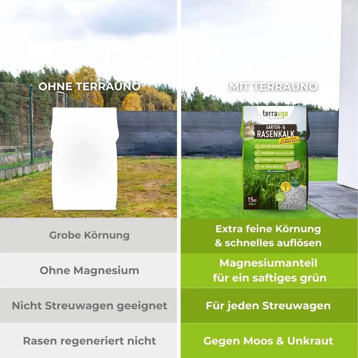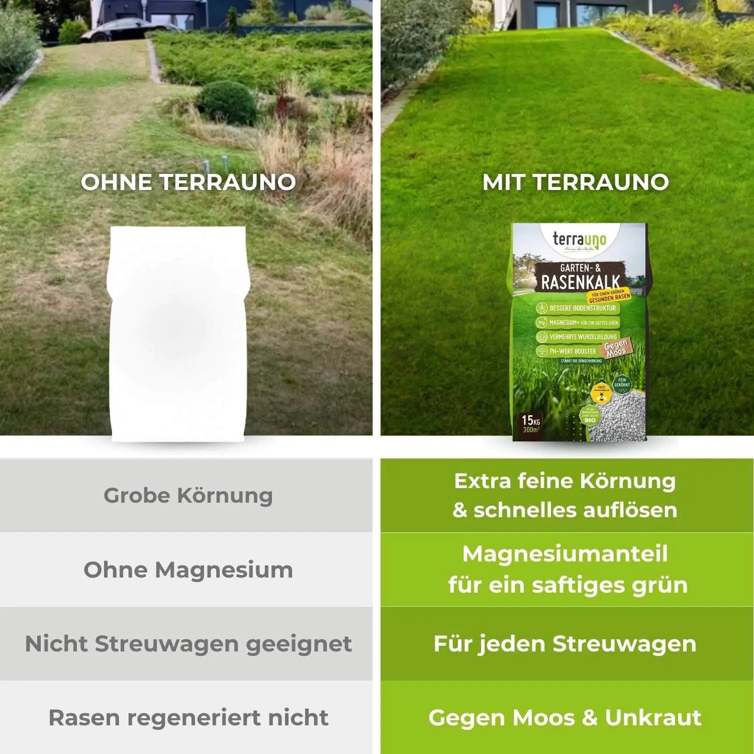 Ein zu saurer Boden schafft ideale Bedingungen für Moos und unerwünschte Pflanzen. Durch die Regulierung des pH-Werts mit TerraUno Rasenkalk werden die Bodenbedingungen für Rasengräser deutlich verbessert.
