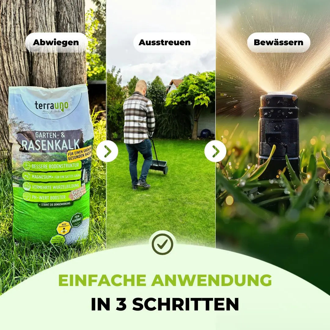 Ein ausgewogener pH-Wert stärkt die Wurzeln, aktiviert das Bodenleben und schafft ein Umfeld, in dem sich Rasengräser optimal entwickeln können – Moos und Unkraut haben es dadurch deutlich schwerer. Der feinkörnige, staubarme Kalk lässt sich besonders gleichmäßig ausstreuen und ist ideal geeignet für Frühling oder Herbst.