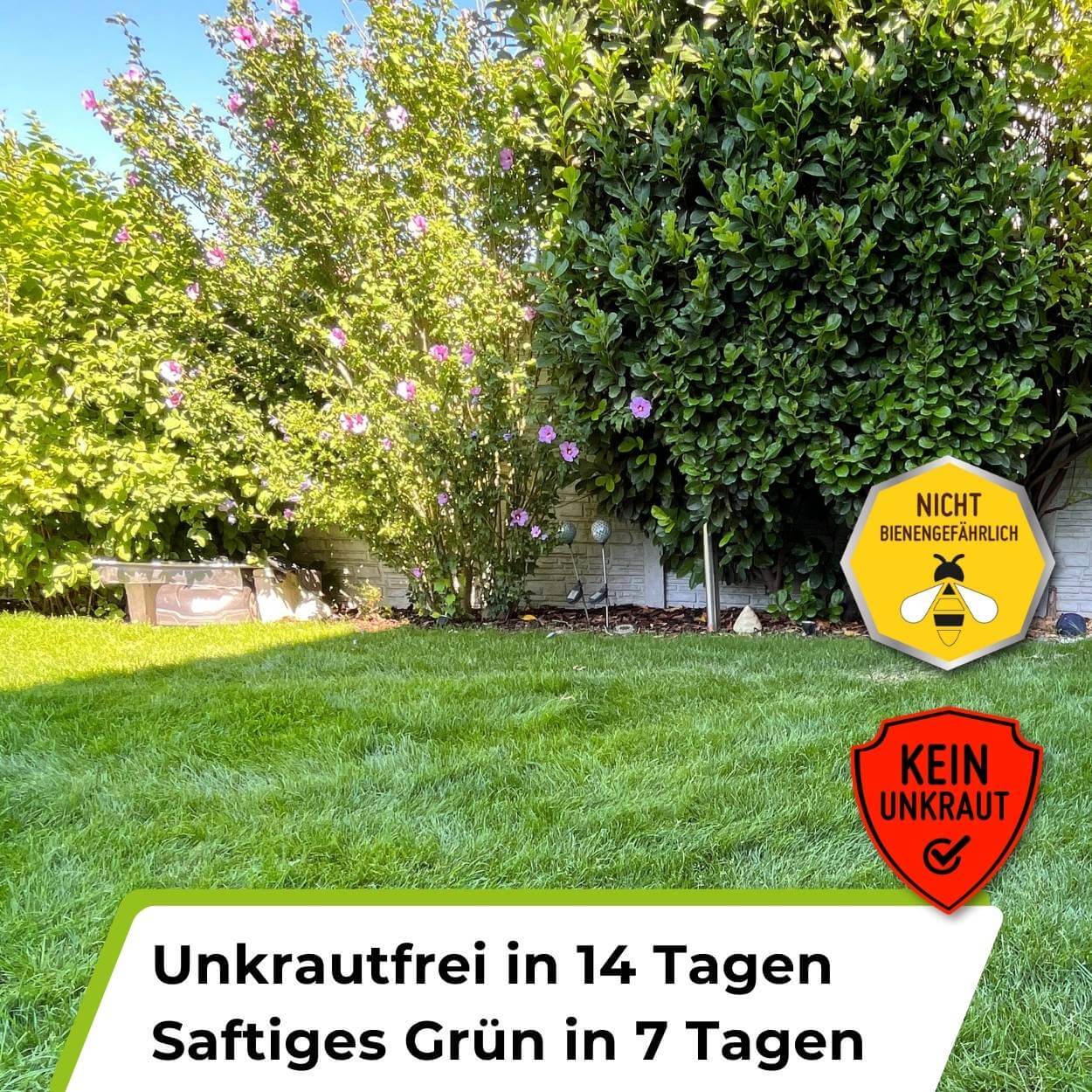 Bereits nach wenigen Tagen kannst du großartige Ergebnisse erwarten, nach 14 Tagen ist dein Rasen unkrautfrei.