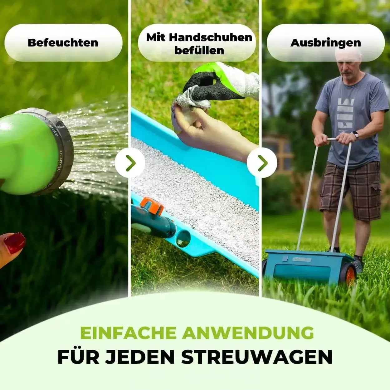 • Vor der Anwendung den Rasen leicht anfeuchten, um optimale Haftung des Granulats zu gewährleisten.