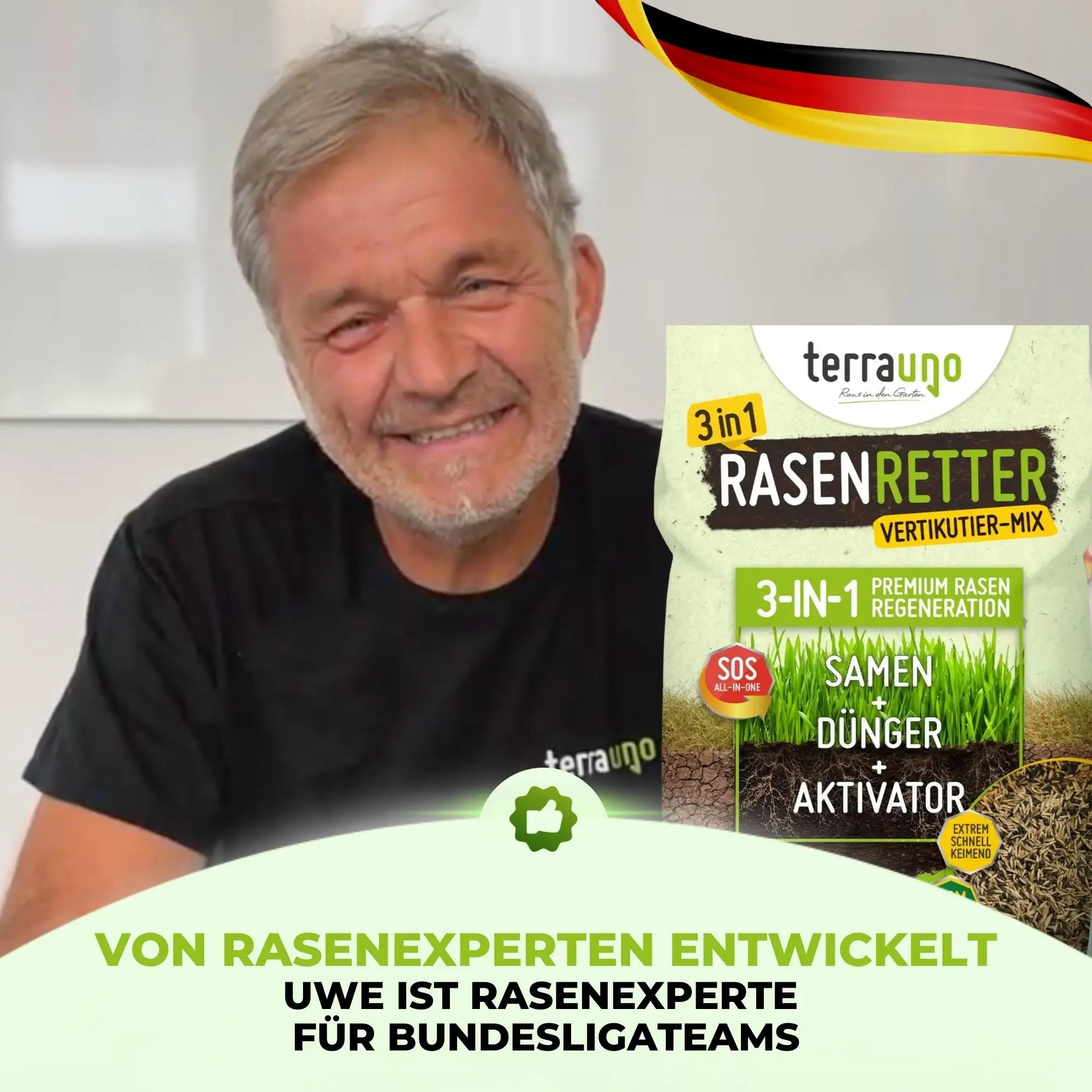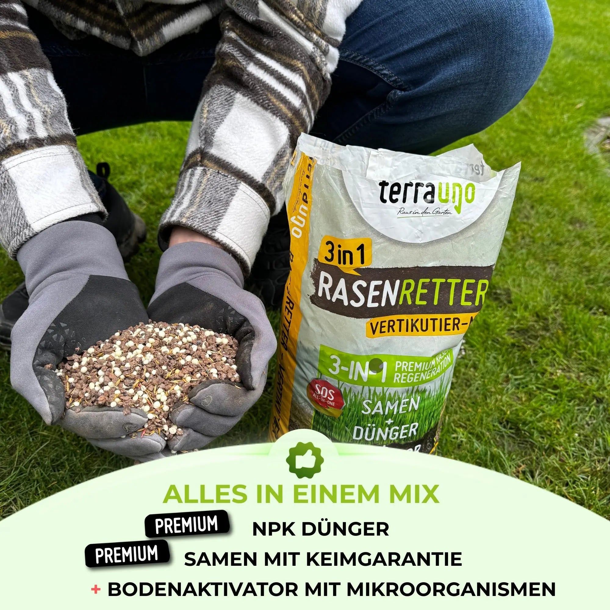 Die langfristige Bodenverbesserung durch TerraUno Rasenretter / Vertikutier Mix fördert einen gesunden, durchwurzelten Rasen und verbessert die Bodenstruktur nachhaltig. Ausgetrocknete, verdichtete Böden werden durch organische Materialien aufgelockert, was tiefes Wurzelwachstum und verbesserte Wasserspeicherung ermöglicht. Der Rasen wird dichter, gleichmäßiger und widerstandsfähiger gegen Krankheiten und Unkraut.