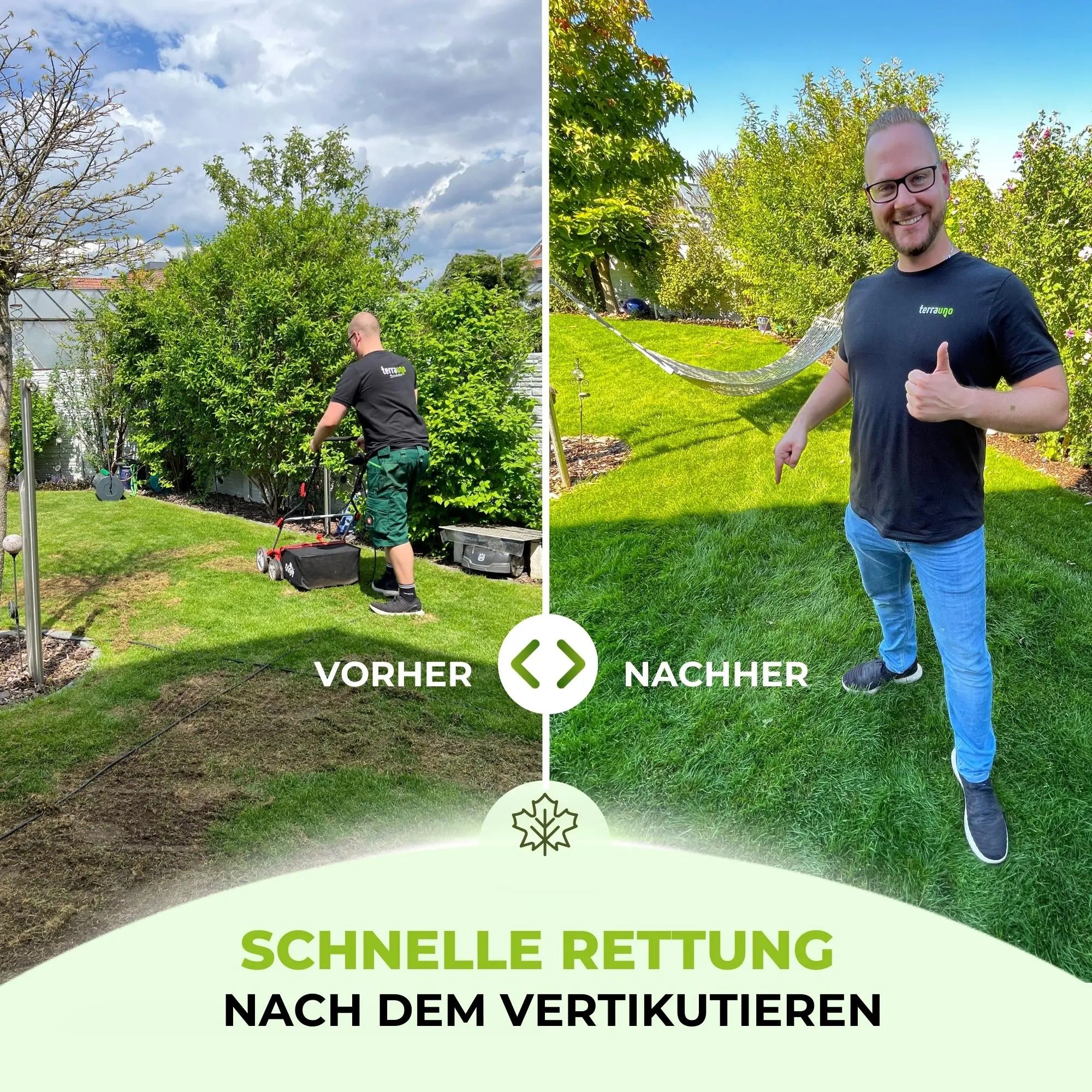 - Ideal bei verfilztem oder kraftlosem Rasen