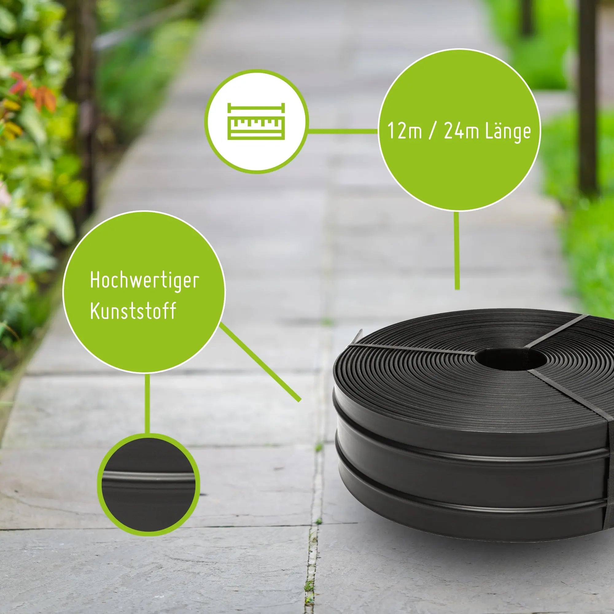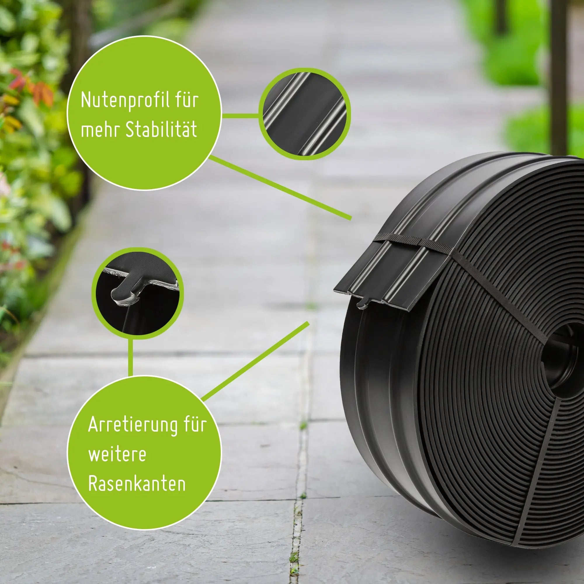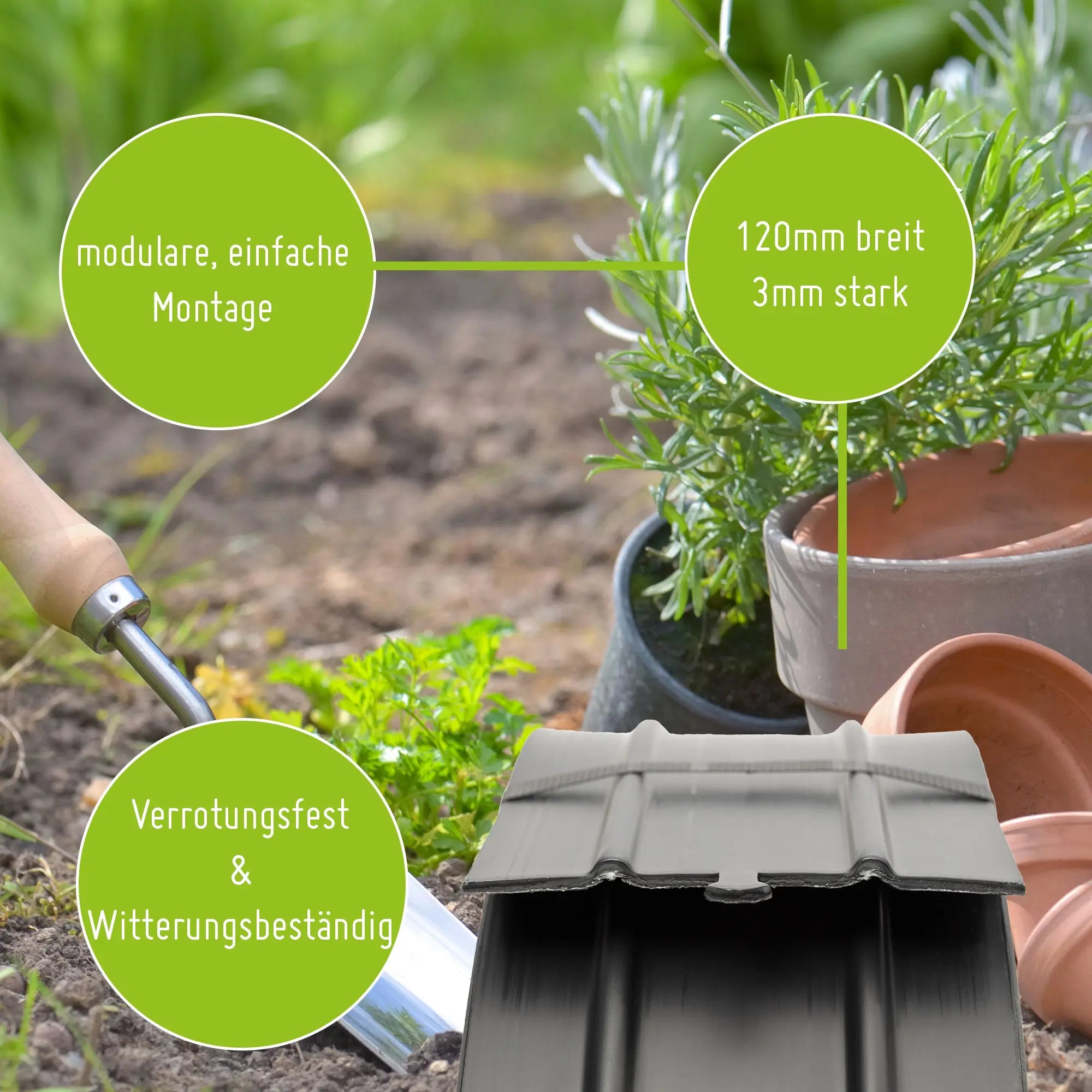 Unsere Rasenkante bietet eine klare Abgrenzung, ohne dabei zu stark aufzufallen. Sie sorgt für saubere und gepflegte Kanten in Ihrem Garten und verleiht Ihrem Rasen ein ordentliches Erscheinungsbild. Robuste Materialien und eine einfache Handhabung machen unsere Rasenkante zur idealen Wahl für Hobbygärtner und Profis.