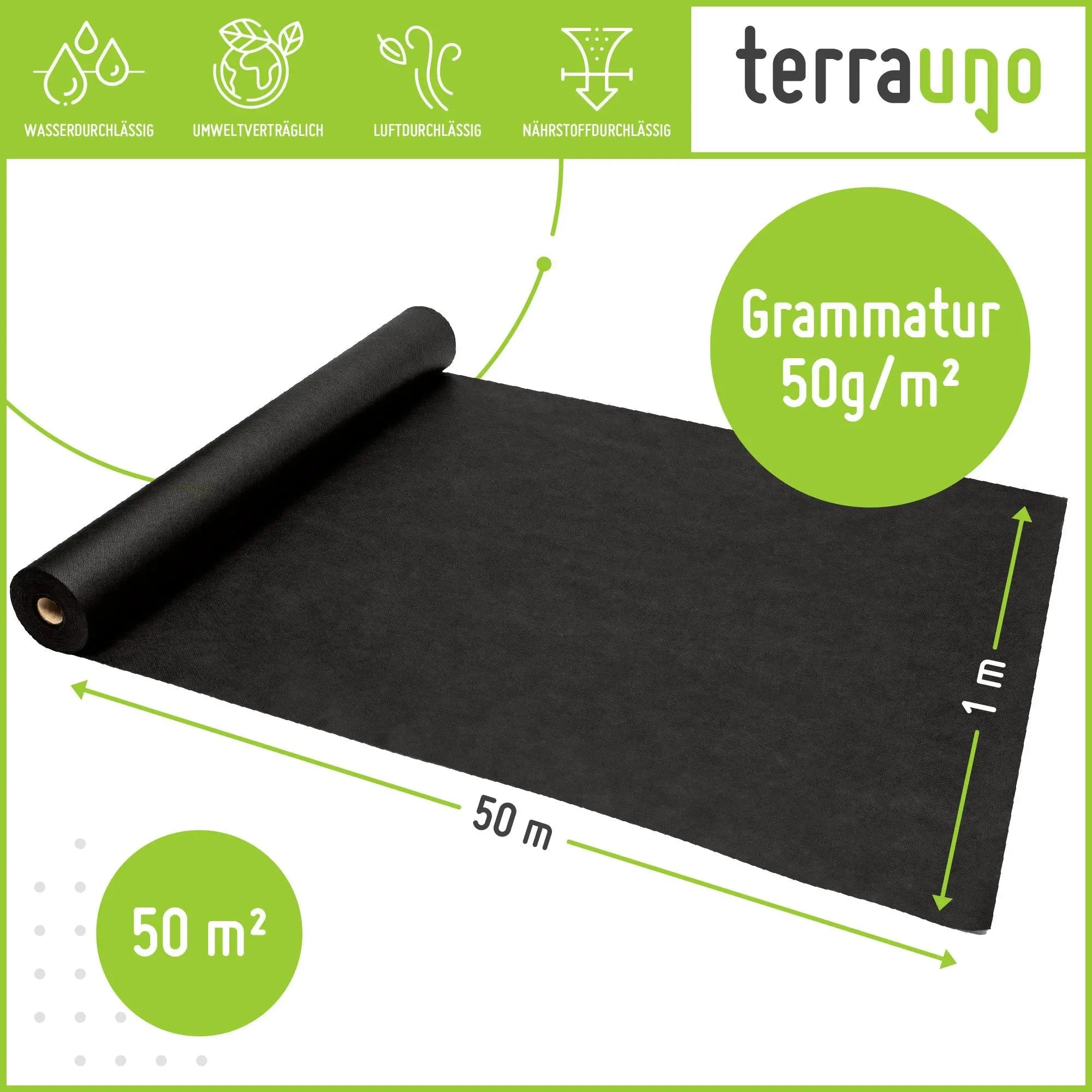 Verabschiede Dich von lästigem Unkraut in deinem Garten mit unserem hochwertigen Terrauno Unkrautvlies. Dieses langlebige und atmungsaktive Vlies bietet einen effektiven Schutz vor Unkraut und erleichtert Dir die Gartenarbeit erheblich.