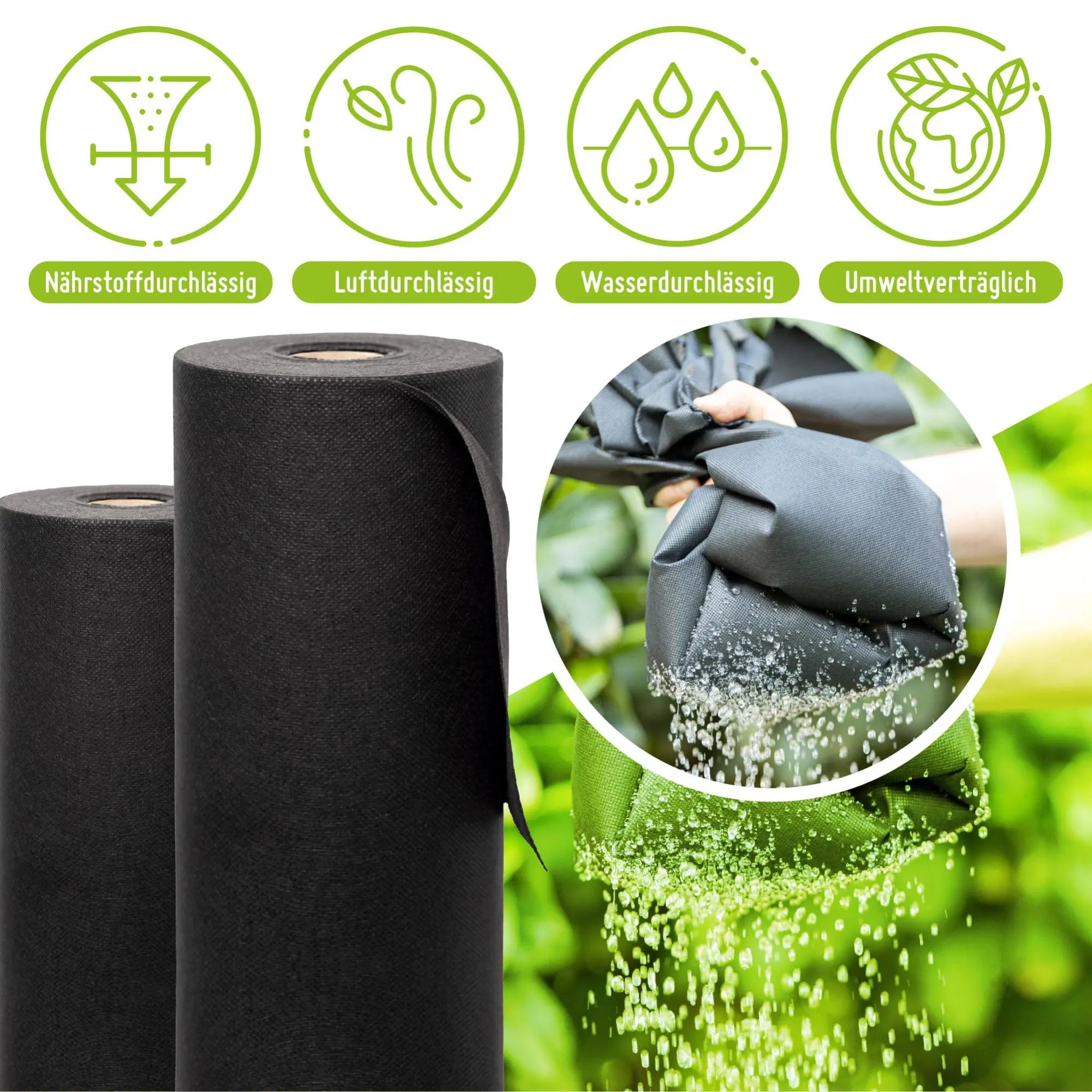 - Atmungsaktiv und wasserdurchlässig: Das Vlies lässt Wasser, Nährstoffe und Luft zu den Pflanzenwurzeln durch, während es gleichzeitig das Wachstum von Unkraut verhindert.